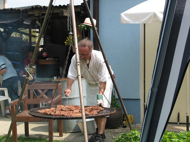 Zu seinem 60er lud Buddy viele Freunde in sein Domizil in der Lobau. Natürlich gab es "Spießbraten" am Schwingrost. |