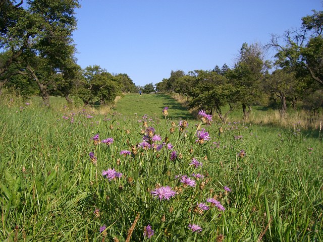 | Es gibt aber auch große Wiesen mit Obstbäumen und vielen Wiesenblumen. |
