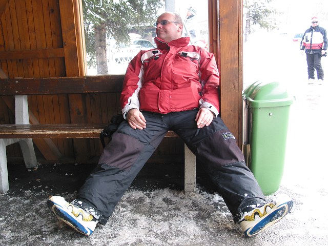 | Sitzstreik des Snowboarders. |