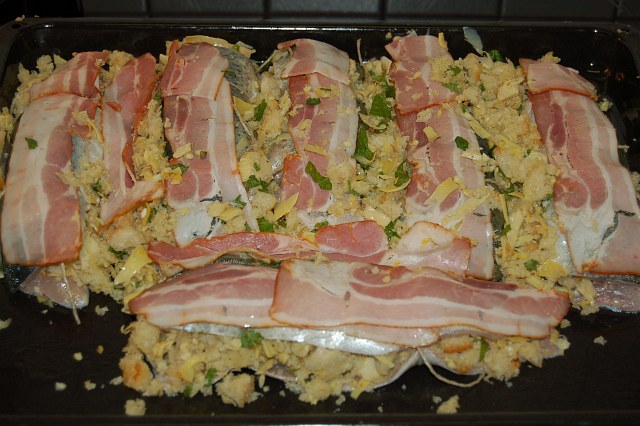 | Gut zugedeckt warten die Forellen auf den Herd. |