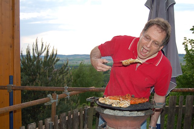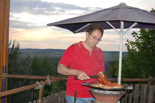 Grillen macht bei Regen erst Spaß! Nachdem Johannes erst später kam und Silvia sich um die Beilagen kümmerte, hab ich das Grillen übernommen.