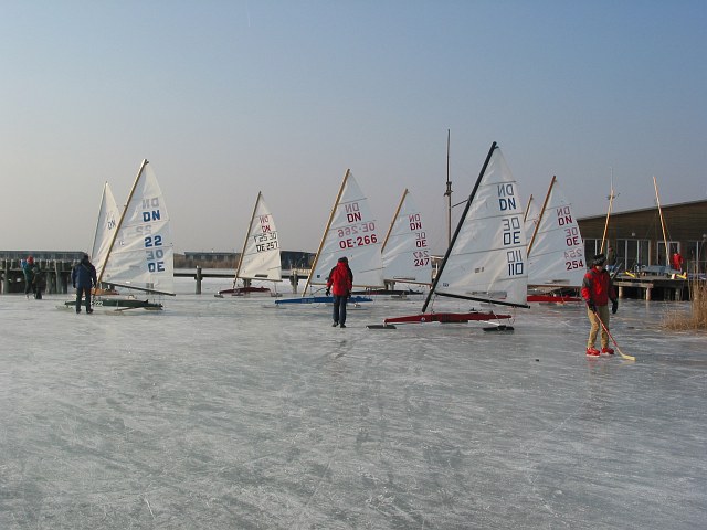 | Außer Eisläufern waren auch viele Eissegler zu sehen. |