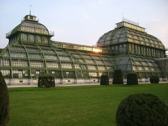 Das Palmenhaus glänzt in der Sonne. | |