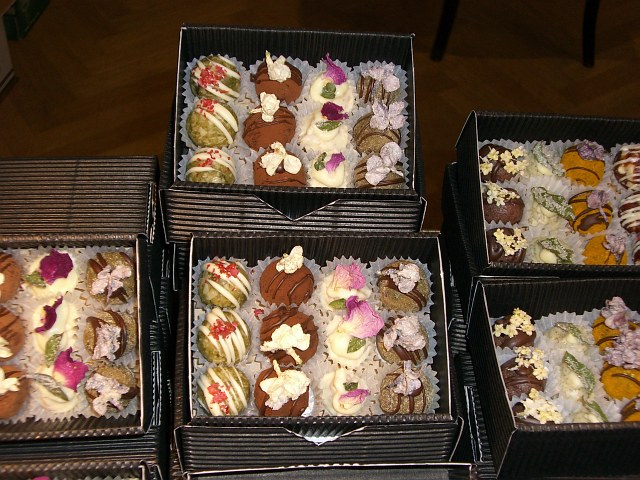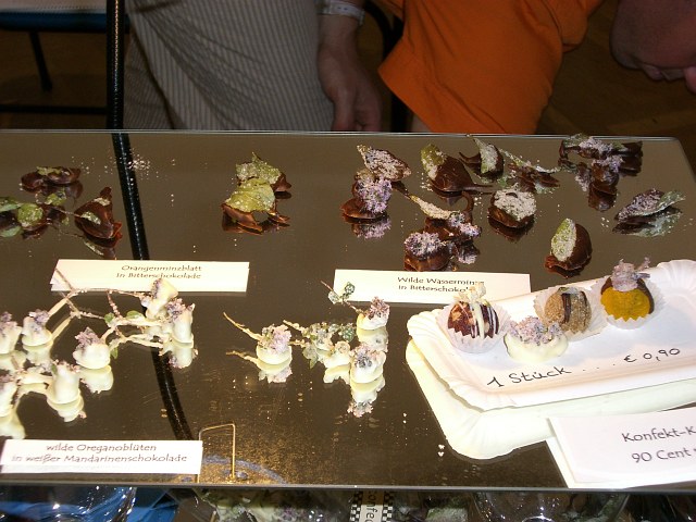 Die tollsten Ideen wie wilde Blüten in Schokolade getunkt. Aber eigentlich hatten wir uns mehr Kostproben erwartet, da waren wir eher enttäuscht! |