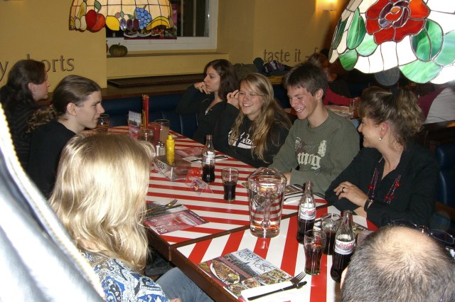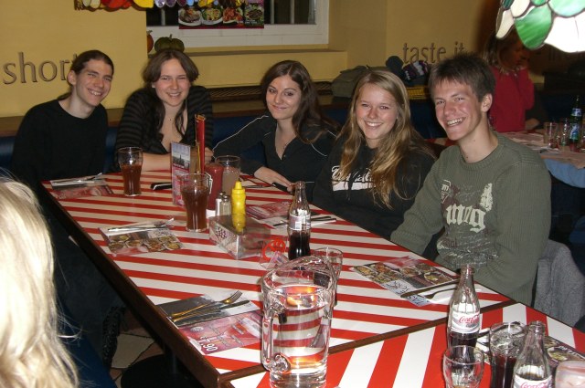 | Am Samstag trafen wir uns mit den Traurig's wieder einmal im Friday's um Bettinas bestandene Führerscheinprüfung zu feiern. Bettina brachte auch gleich ihren neune Freund, Richard, mit. | ||
