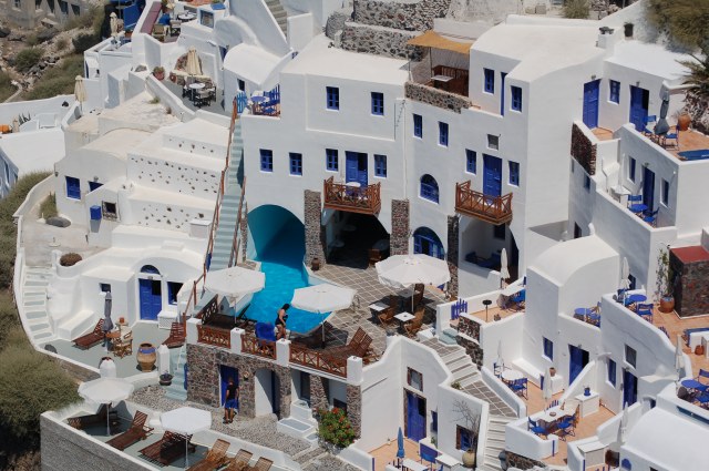 | Ein Hotel wie ein Puppenhaus in Oia. | ||