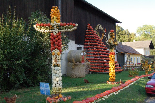 | Danach kehrten wir beim Franzlbauer ein, und bestaunten seine Ausstellung der selbstgezogenen 370 Kürbissorten aus aller Welt. | ||