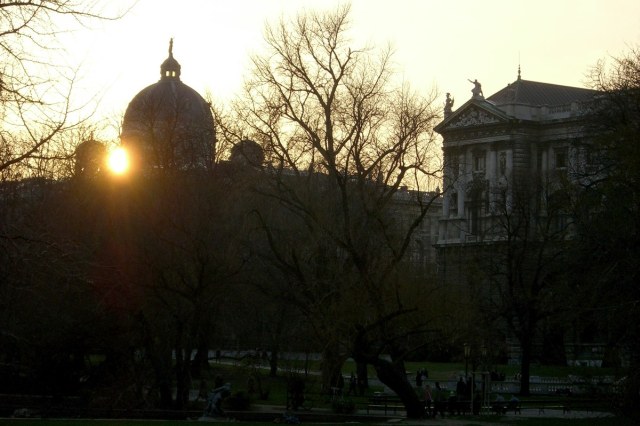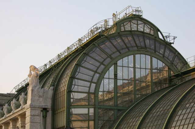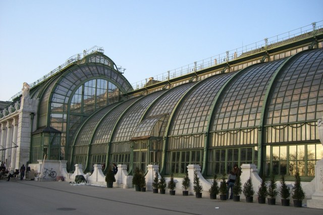 Das Palmenhaus im Burggarten glänzte noch in der Abendsonne. | |