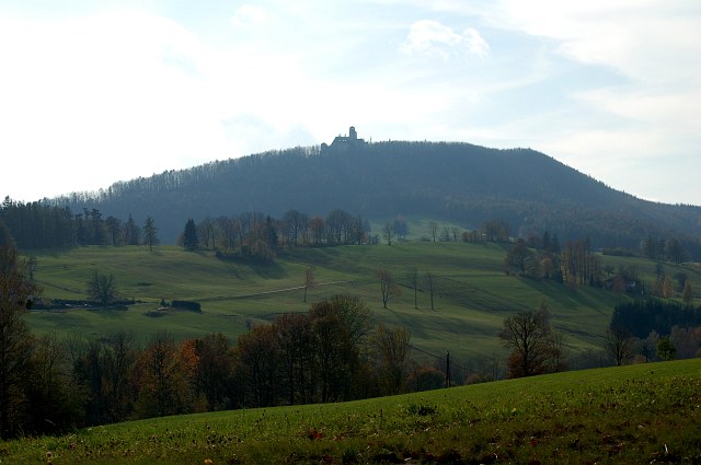 | Die Reste der Burg thronen auf einem 799m hohen Berg. | ![]() |
