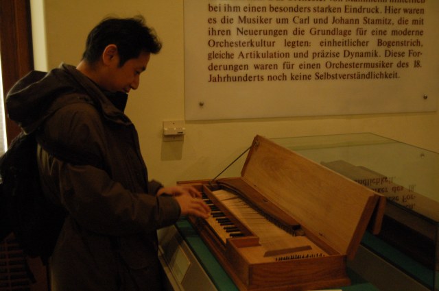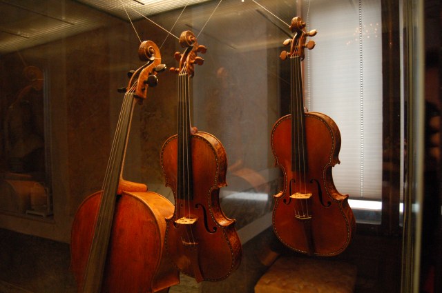 | Dort wollte er hauptsächlich die Musikinstrumentensammlung sehen. (im Bild 2 Stradivaris) | ![]() |