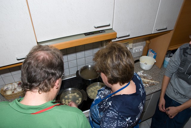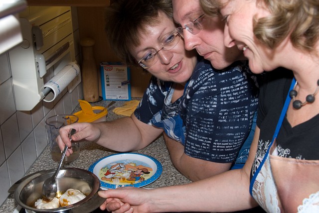 Voll Begeisterung kochten wir zuerst die Nachspeise und stellten sie erwartungsvoll in den Kühlschrank. | |