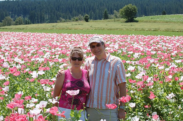 Mohn wohin das Auge reicht. Manche Felder sind auch in