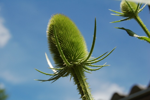 Grün sehen die Distel noch fast weich aus.