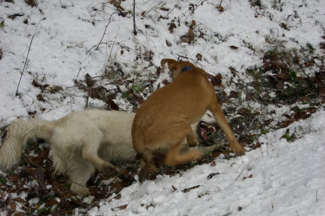 Sogar Remus fand jemanden zum Spielen und fand den Spaziergang ganz toll. |