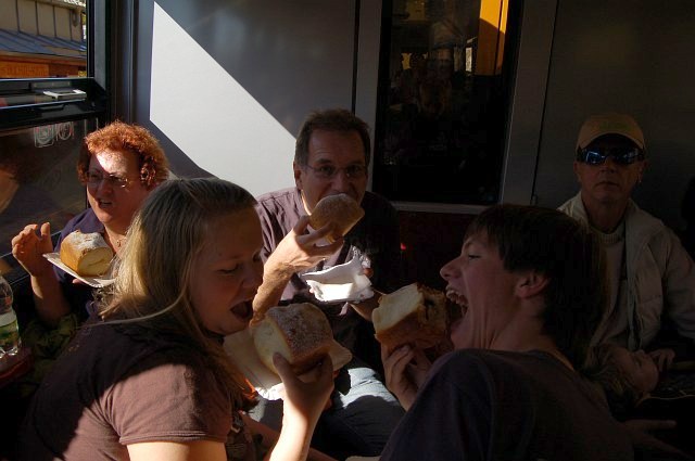 | Wenn der Zafira schon sieben Sitze hat, so muss man das auch nutzen und so sind wir zumindest zu sechst (2 Altbürgis, 2 Alttraurigs und Bettina mit Freund Ritchie) zum Schneeberg gefahren. | ![]() |