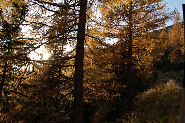 | Die Strecke führt wieder durch den herbstlichen Wald. | ![]() |