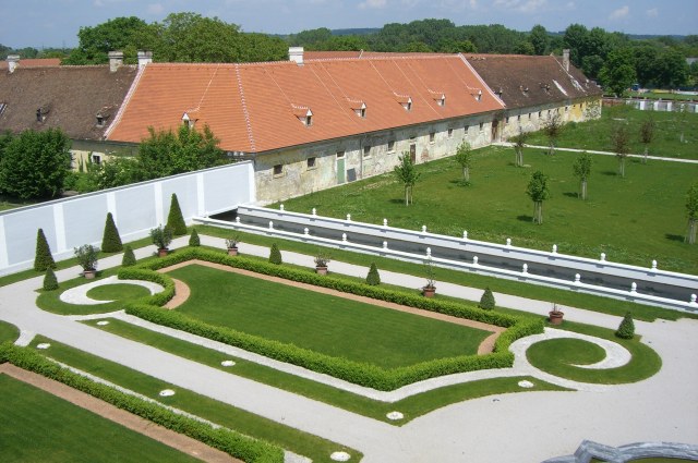 | Im Barockgarten gibt es zwar nicht so viele Blumen wie im Schloss Hof, aber auch der bunte Kies wirkt sehr gut. | ![]() |