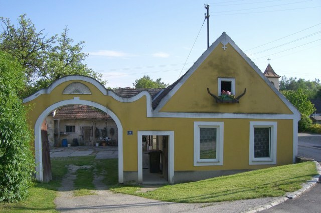 | Wir beschlossen, nicht entlang der Donau weiter zu fahren, sondern den Traisental-Donauradweg-Abschneider zu nehmen, da wir uns dort mehr Möglichkeiten zum Übernachten erhofften. Die erste Kellergasse war die falsche und wir kehrten nach einem Steilstück keuchend wieder um. | ![]() |