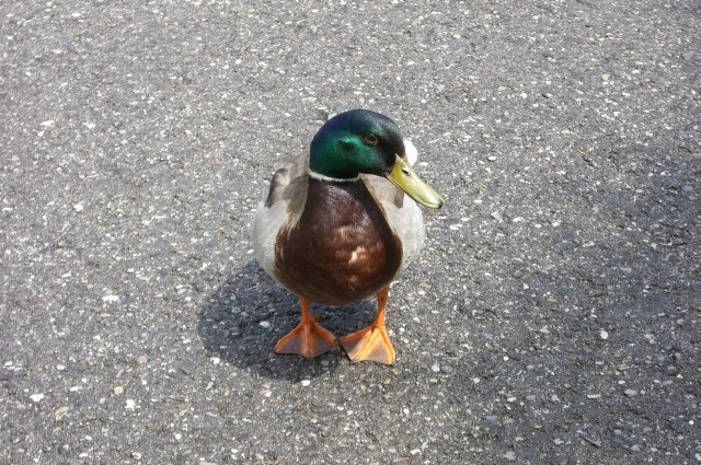 | Der Enterich verstand überhaupt nicht, wie man endlos lang in seiner Fahrradtasche stierln kann und dann doch nur einen Fotoapparat und kein Futter herausholt! | ![]() |