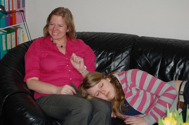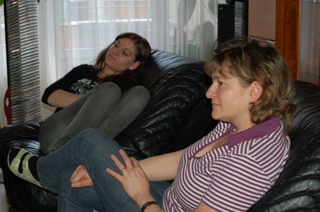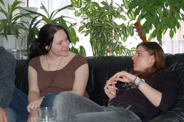| Corinna und Sieglinde lauschen der Unterhaltung. | ![]() |