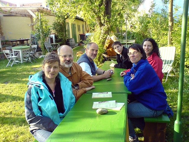 | In Sooß landeten wir dann bei einem urigen Heurigen wo wir uns in der untergehenden Sonne wärmten. | ![]() |