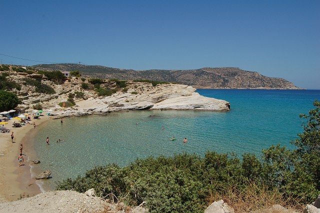 | Malerischen Buchten wie hier auf dem Bild Kira Panagia, laden zum Baden ein. | ![]() |