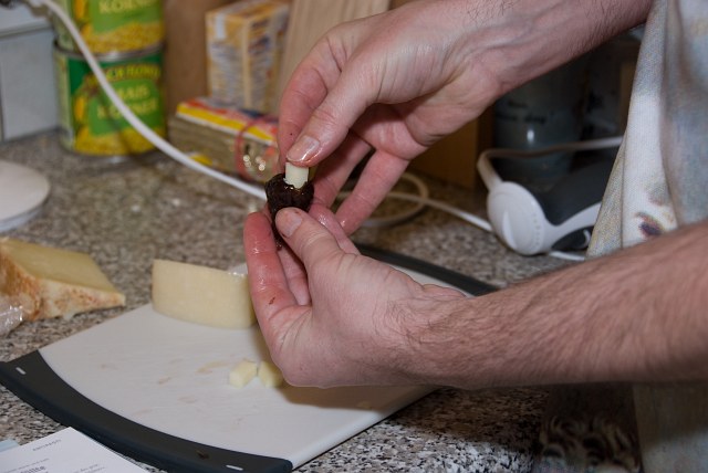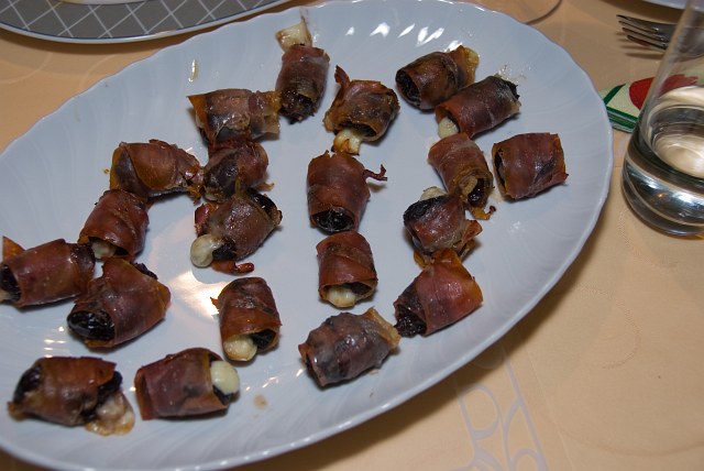 4.) Pflaumen-Schinken-Bonbons mit Pecorino Hier werden Dörrzwetschken mit Pecorino gefüllt. |