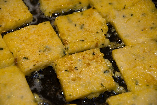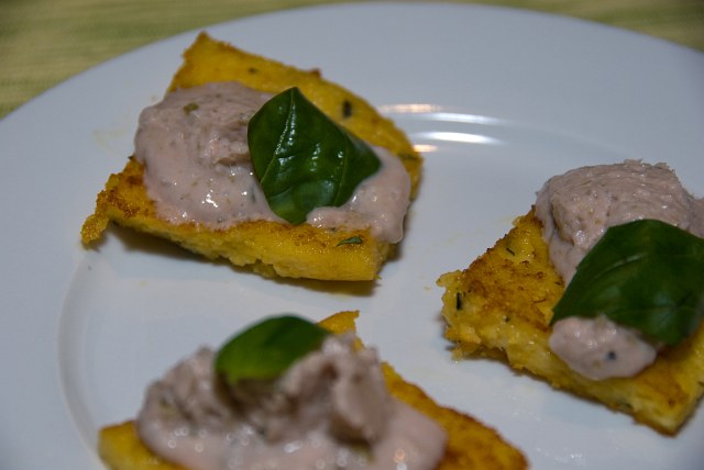 8.) Polentaecken mit Thunfischpaste Eine weiter Beilage war die abgebratenen Polentaschnitten. |