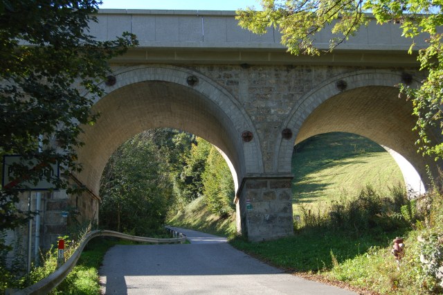 | Der Weg führte uns unter dem Viadukt der Semmeringbahn hindurch. |