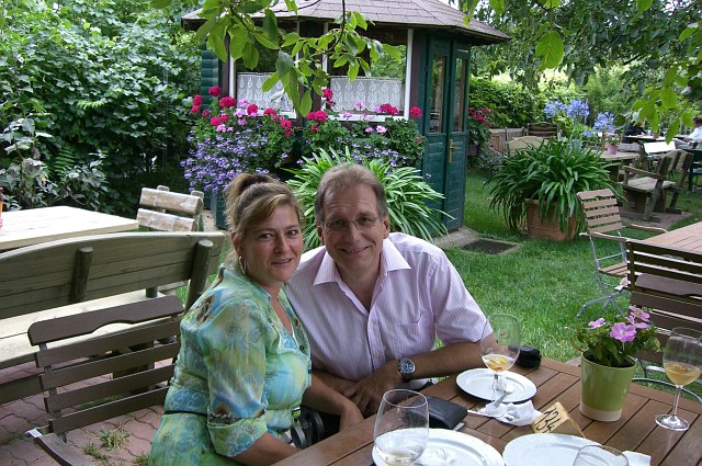 Wir stärkten uns zuerst beim Schotten-Stift-Heurigen in Maria Enzersdorf. Es sieht nur so aus, als würden wir uns gegenseitig das Essen vom Teller klauen, es war genug da und sehr gut. |