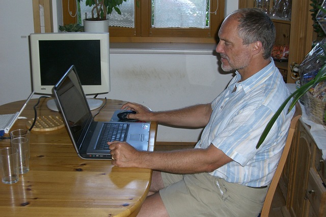 Alex hatte die Ruhe weg und sortierte seine Urlaubsfotos aus Rhodos aus.
