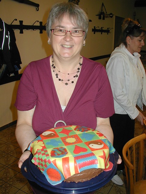 Sissy ist die einzige, die ich kenne, die zwei Jahre hintereinander ihren 50er feiert! Zum vorjährigen Geburtstagsgeschenk passend, gabs heuer auch eine Patchwork-Torte. |
