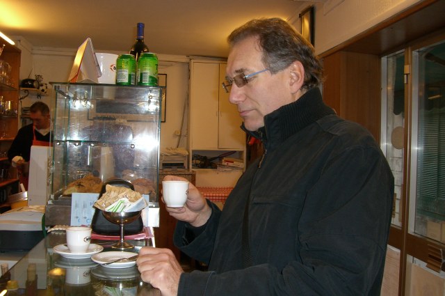 Nach dem grauslichen ÖBB-Frühstückskaffee peilten wir zuerst einen ordentlichen Espresso an. | |
