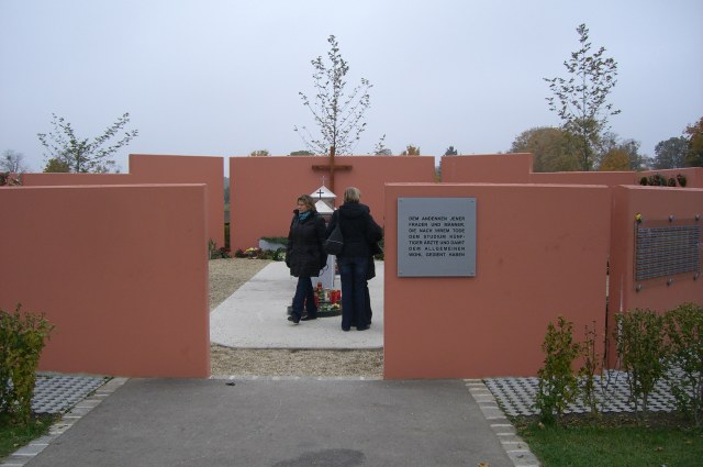 | Die neue Gedenkstätte, rechts sind die Namenstafeln zu sehen. |