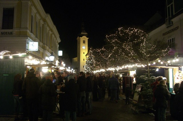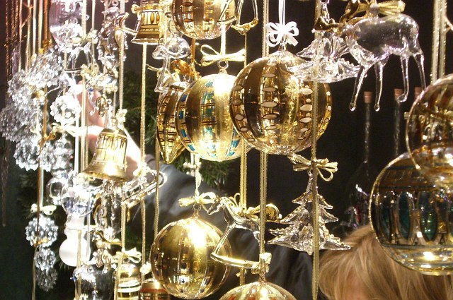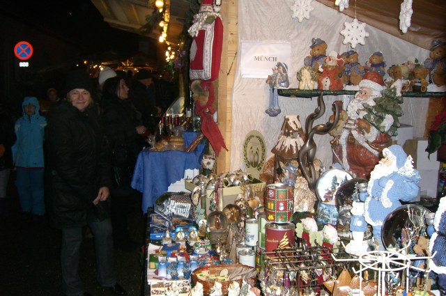 | Es gibt dort gute Schmankerl-Standeln und dazwischen Weihnachtsschmuck und Spielzeug. |