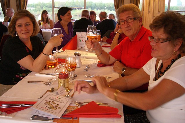 | Helmut erhielt von uns als Geburtstagsgeschenk eine Themenfahrt "Ciao Italia" auf der Donau. Natürlich darf er seine Frau mitnehmen und natürlich gehen wir beide auch mit. |