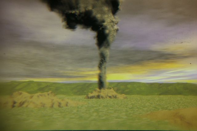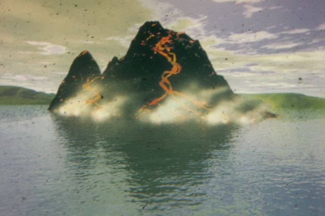 Deutlich erkennbare Sedimentschichten mit Ausbruchsablagerungen. | |