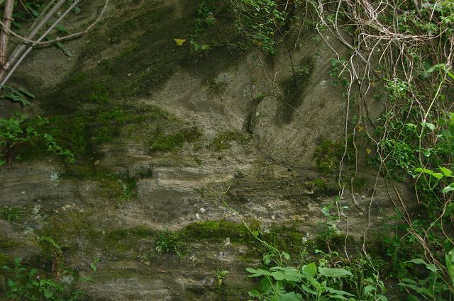 | Hier sah man waagrechte und schräge Ascheschichtungen. |