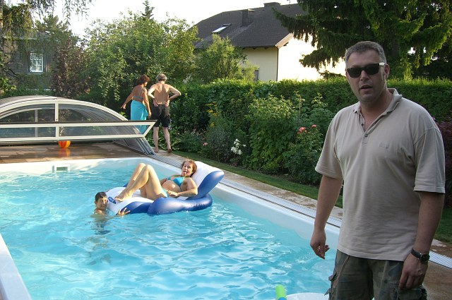 Weniger wunderbar waren die Gelsen, die waren offenbar wegen extrem schwülem Wetter sehr aggressiv. Schließlich wurde es uns allen zu viel und wir stürmten alle in den Pool. |