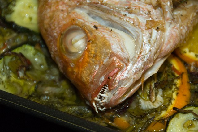| Die drei Doraden (Goldbrassen) mussten noch zuschauen. |