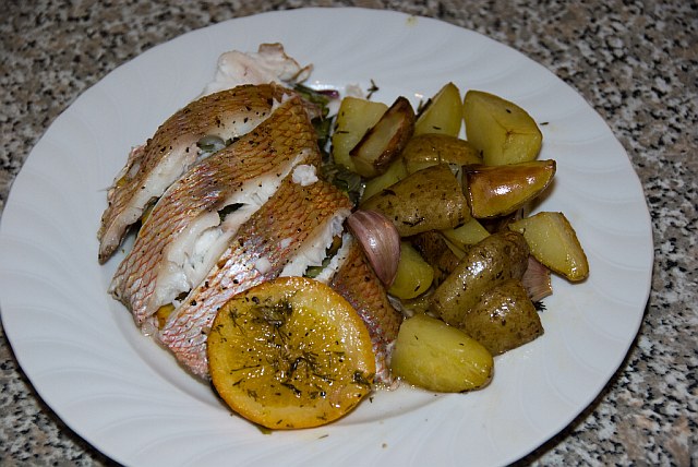 Inzwischen sind die Erdäpfel und Fische im Rohr fertig geworden. | |
