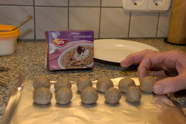 | Für die Topfen-Maroniknödel zur Nachspeise musste die Fülle vorab hergerichtet und tiefgekühlt werden. |