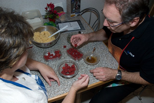 Am Nebenschauplatz marinierten wir die Himbeeren für die Beilage: Grießknödel. | |