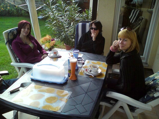 Franzi war natürlich auch da und wir genossen die warmen Sonnenstrahlen im windgeschützten Eck der Terrasse. | |