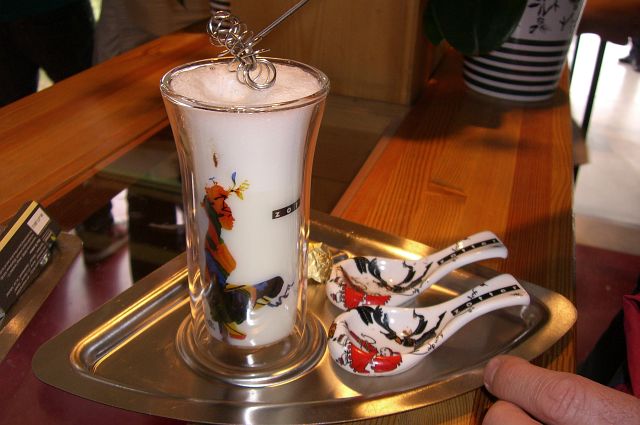 | Hier wählte man eine Trinkschokolade und fasste dazu die heiße Milch aus. |