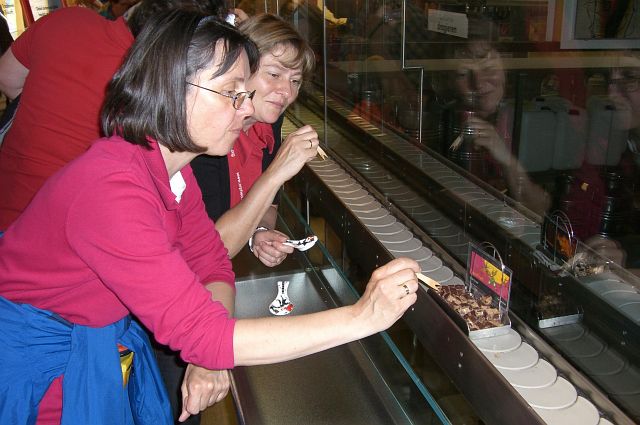 Dach den 48 Stationen sortenreiner Schokoladenverkostung kamen wir zu Schoko-onLine. | |