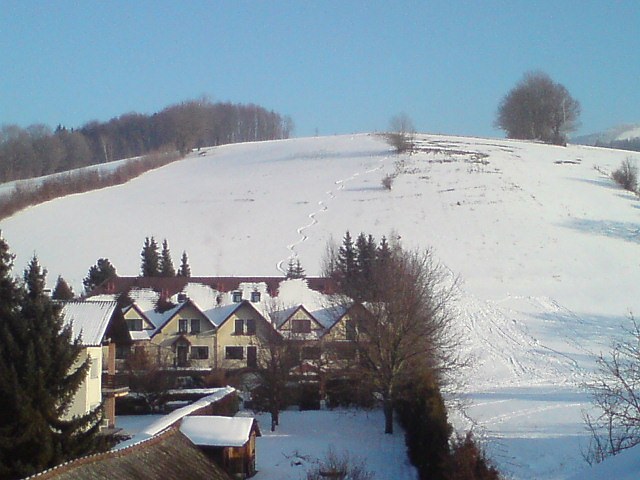 | Der einsam gespurte Hang lockte fast zum Schifahren. |