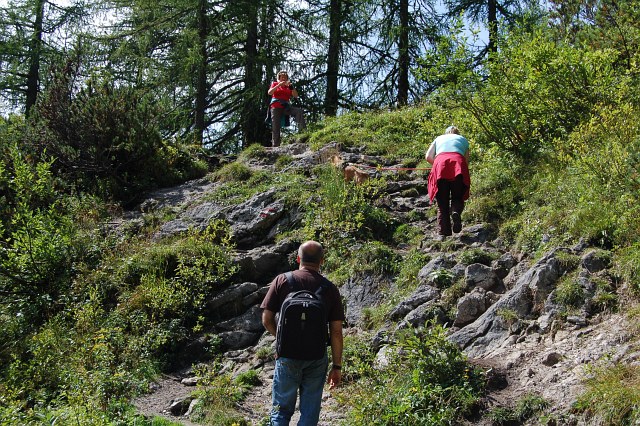 | Und wieder bergauf zu den Almhütten. |