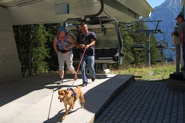 Mit dem Sessellift ging es wieder hinauf auf die Alm. Remus war schwer beeindruckt. | |
