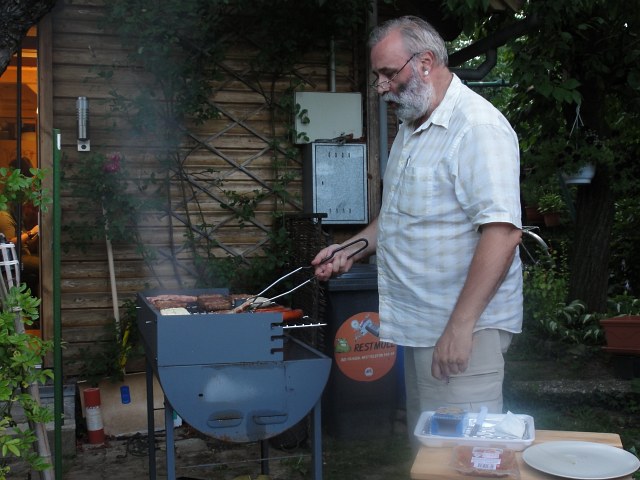 | Michael widmet sich voll konzentriert seiner Grillerei. |